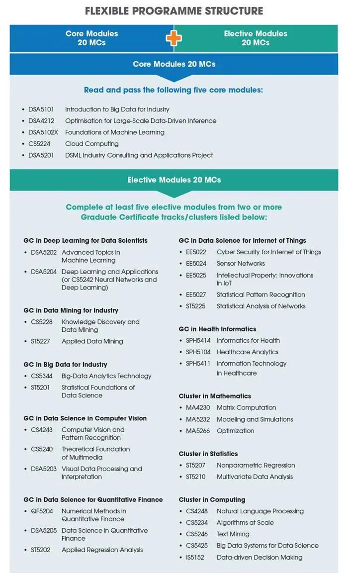 要學(xué)習(xí)至少兩個(gè)領(lǐng)域的5門(mén)選修課程,具體領(lǐng)域涉及到深度學(xué)習(xí)、數(shù)據(jù)挖掘、計(jì)算機(jī)可視化、定量金融等。