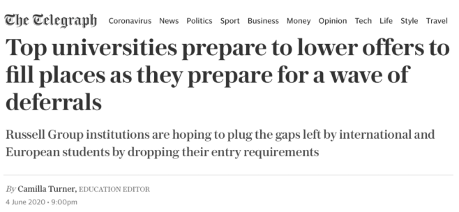 謝菲爾德大學(xué)是“英國(guó)常青藤”羅素集團(tuán)的成員之一,他們的校長(zhǎng)溫·摩根教授(Wyn Morgan)在接受采訪時(shí)表示,由于線上授課、虛擬新生周和社交距離等一系列的限制,一些學(xué)生今年決定推遲入學(xué),各個(gè)大學(xué)都在準(zhǔn)備迎接一波延期。