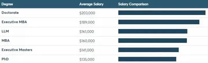 芝加哥大學(xué)最高薪學(xué)位是法學(xué)碩士,校友的平均薪資為257,000美元。學(xué)校畢業(yè)生中,薪水最低的是那些擁有其他碩士學(xué)位的人,年薪約為70,000美元。