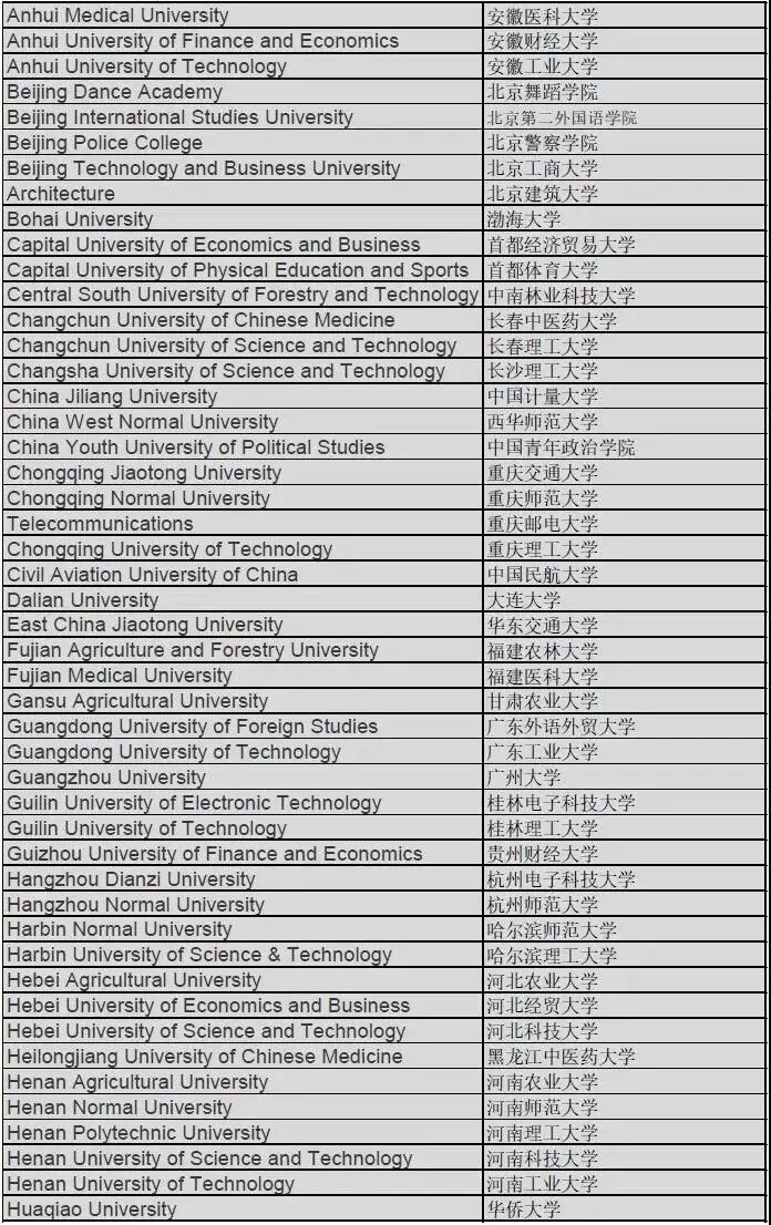 華南師范大學、中國礦業大學、廣西大學、鄭州大學、南昌大學、遼寧大學、北京體育大學、上海對外經貿大學、安徽大學、太原理工大學、湖南師范大學