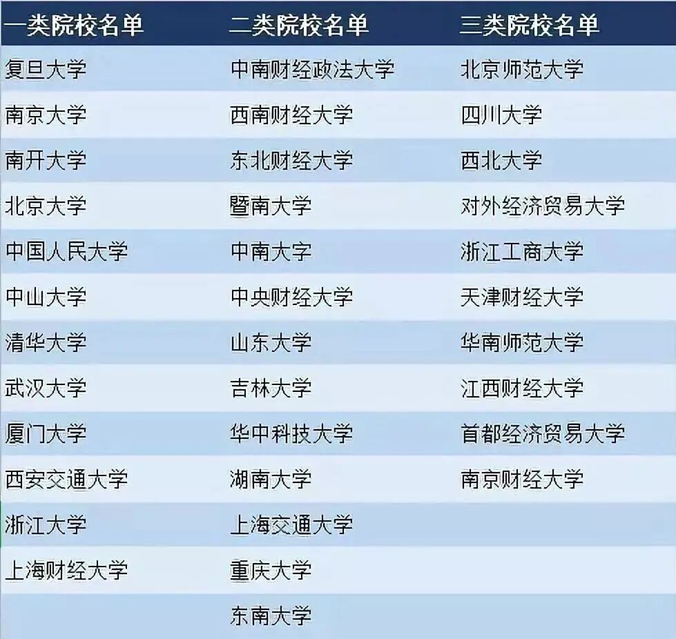 西北大學、遼寧大學、湘潭大學、蘇州大學、浙江財經大學、上海大學、東北師范大學、山西師范大學、鄭州大學、北京交通大學、北京工商大學、云南大學、華中師范大學、安徽大學、武漢理工大學、深圳大學。