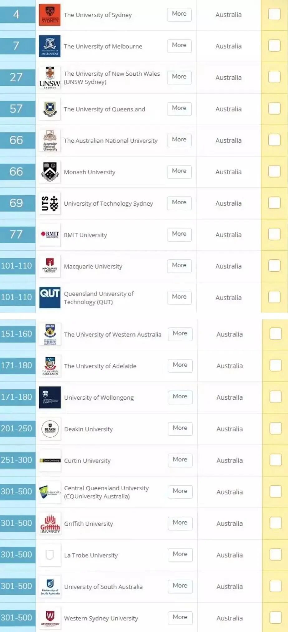 今年,澳洲算的上是一匹黑馬了,不僅有20所大學進入了這次的排名,還有2所大學沖進前十榜單。
