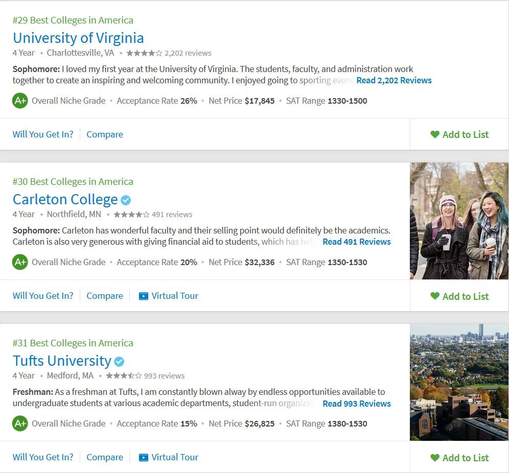 近期,曾被中國網(wǎng)友稱為“美國高校版大眾點(diǎn)評”的Niche發(fā)布了2021美國最佳大學(xué)排名。